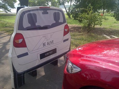 mobil dengan otomatis mengerem. Jarak dari depan mobil ke target sekitar